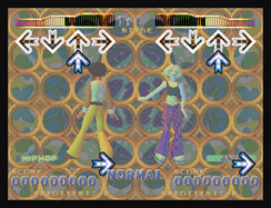 ![]() DDR Screen When the scrolling arrows overlap the stationary arrows, you then hit the corresponding arrow on the platform. And that's it! You have now learned the basics of DDR. DDR Freak has plenty of information for those who would like to learn more about DDR, or those who make it part of their lifestyle. To learn how to speak the language of DDR, consult the DDR Freak Dictionary. If you want help on how to improve, take a look at the Tips & Guides section. To hear a sampling of the music you'll find in DDR, tune in to DDR Freak Radio. Need to know where to find DDR? Search for arcades with DDR near you in our Machine Locations database, or shop for gear to help you groove at home. Now that you know what DDR is, get out there and show us what you're made of! And when your legs begin to fail you, have a seat and come join us on the DDR Freak Forums. |