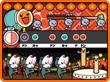 One of Namco's inventions, Taiko no Tatsujin features two Taiko drums, one for each player. Each player uses two sticks to hit the drum. There are four ways in which you can hit the drum: in the middle, on the edge, both sticks hard in the center, and both sticks in rapid succession. The notes scroll from the right to left and are depicted as smilies. The color and expression of smilie determines which of the four hits to do. The music in this game is primarily traditional Japanese music.